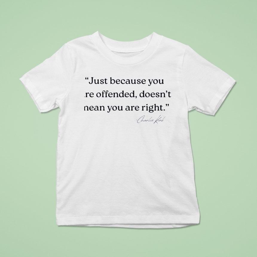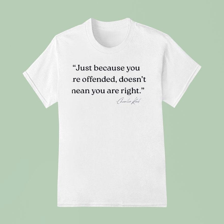 Wearable simplicity, unmatched comfort with Just Because You Are Offended Doesn’t Mean You’re Right Charlie Kirk Shirt, in today’s society, it’s easy to get caught up in the offense culture and feel like being offended automatically makes you right. However, the new “Just Because You Are Offended Doesn’t Mean You’re Right Charlie Kirk Shirt” challenges this notion and promotes critical thinking and open-mindedness.