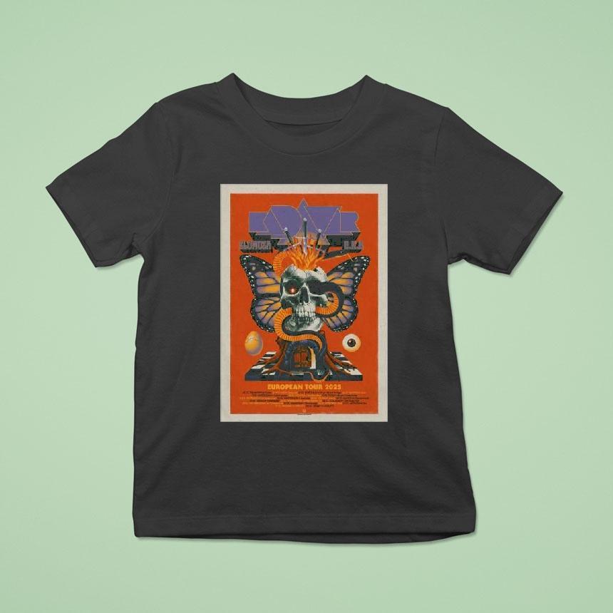 Wear it your way with Kadavar + Slomosa O.r.b Tour European 2025 Shirt, join the electric rock band Kadavar on their Slomosa O.r.b Tour in 2025 with this limited edition European shirt. Featuring the band’s iconic logo and tour dates, this shirt will have you rocking out in style at every stop on the tour. Don’t miss out on this must-have item for true Kadavar fans.