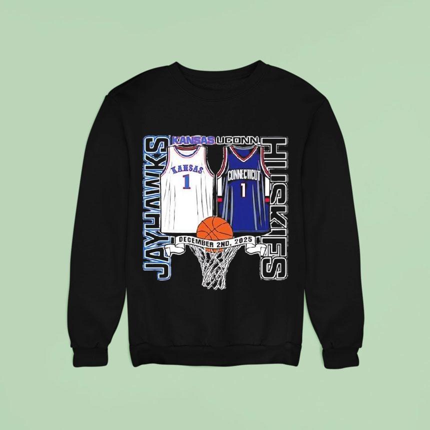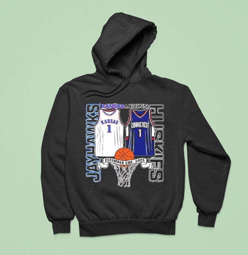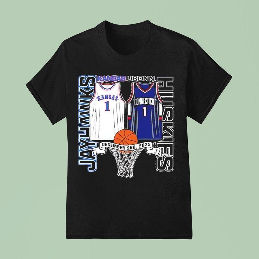Uncomplicated style choice with Kansas Jayhawks Basketball Vs Uconn Huskies December 2nd 2025 Shirt, get ready for a thrilling game as the Kansas Jayhawks Basketball team takes on the Uconn Huskies on December 2nd, 2025. Fans are eager and sporting their limited edition shirts in anticipation of this exciting matchup between two top teams. Don’t miss out on this epic showdown!