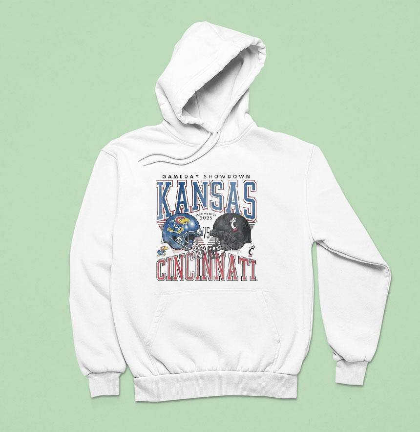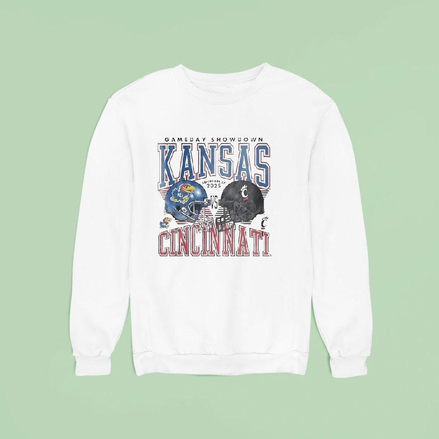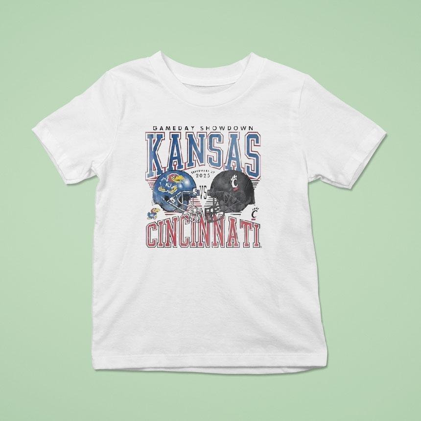 Elevate your casual look with Kansas Jayhawks Vs Cincinnati Bearcats Football Helmet 2025 Shirt, in 2025, the Kansas Jayhawks and Cincinnati Bearcats will face off on the football field, but it’s not just the game that has fans buzzing. The highly anticipated matchup also marks the debut of the new Kansas Jayhawks vs Cincinnati Bearcats football helmet 2025 shirt, bringing fierce style to the gridiron.
