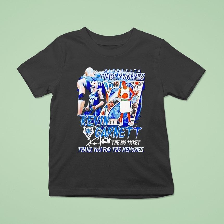Sleek simplicity, ultimate comfort with Kevin Garnett Minnesota Timberwolves The Big Ticket Thank You For The Memories Shirt, “Join us as we take a trip down memory lane with the iconic Kevin Garnett and his time with the Minnesota Timberwolves. From his incredible on-court performances to his undeniable impact on the franchise, let’s celebrate The Big Ticket’s legacy with our limited edition ‘Thank You For The Memories’ shirt.”