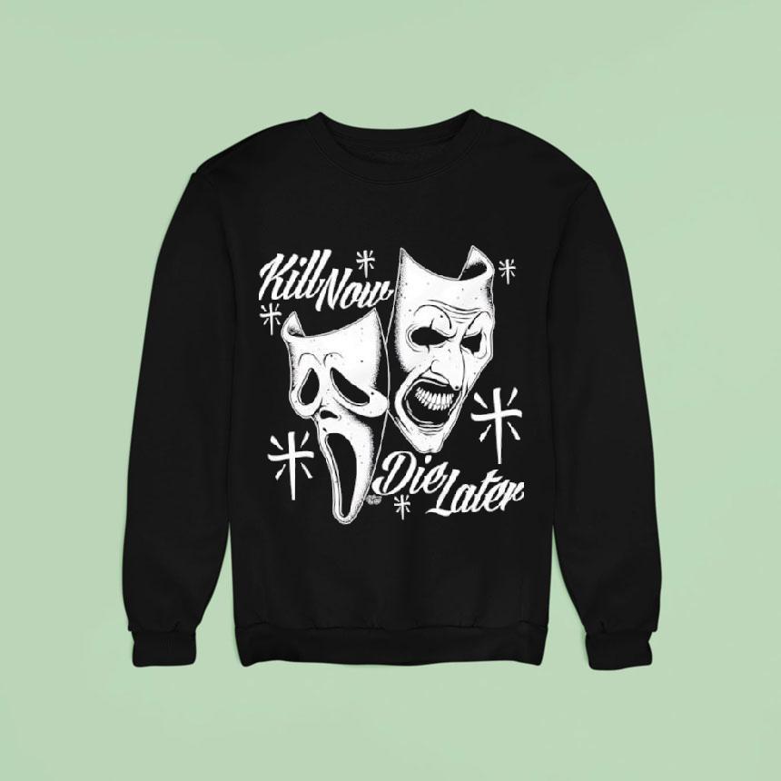 Effortless, everyday style with Kill Now Die Later Mask Shirt, unleash your inner rebel with our Kill Now Die Later Mask Shirt. Made with high-quality fabric and featuring a bold design, this shirt is perfect for making a statement. Dare to be bold and stand out in this edgy and unique piece.