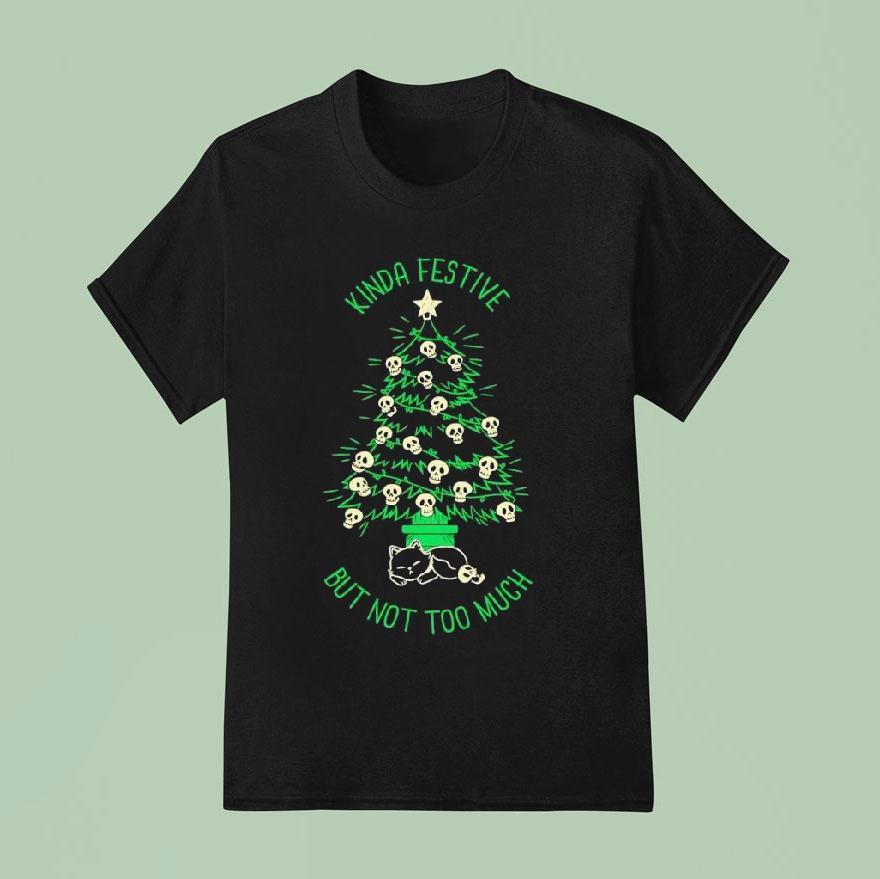 Effortless fashion statement with Kinda Festive But Not Too Much Skulls Christmas Tree Cat Shirt, celebrate the holiday season in style with our Kinda Festive But Not Too Much Skulls Christmas Tree Cat Shirt. Perfect for cat lovers who want a touch of holiday spirit without being too traditional. Show off your unique style with this festive and fun shirt.