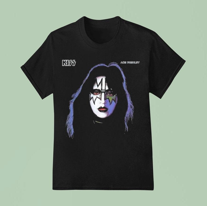 Classic tee, modern comfort with Kiss – 1978 Ace Frehley Shirt, in 1978, Ace Frehley, guitarist of the iconic band KISS, rocked the stage wearing his signature blue and silver shirt. Today, this vintage tee is a must-have for any fan and a testament to the rock and roll legacy of the band. Experience the nostalgia with the 1978 Ace Frehley shirt.