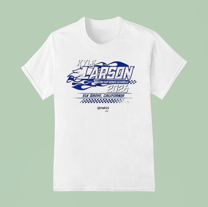 Simple yet versatile fashion with Kyle Larson Hendrick Motorsports Team 2026 Nascar Cup Series Schedule Elk Grove California Shirt, the 2026 Nascar Cup Series schedule is packed with excitement, but one team, in particular, is making headlines. Kyle Larson, a rising star on the Hendrick Motorsports team, is already gaining attention for his impressive skills behind the wheel. Representing his hometown of Elk Grove, California, Larson is also turning heads with his custom-designed team shirt.
