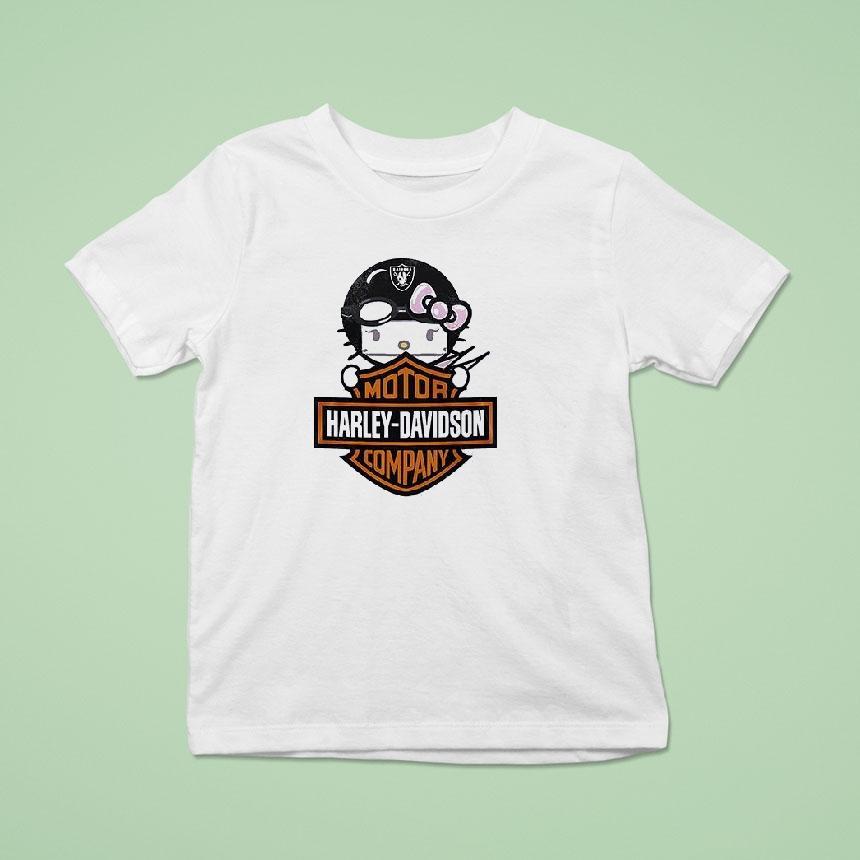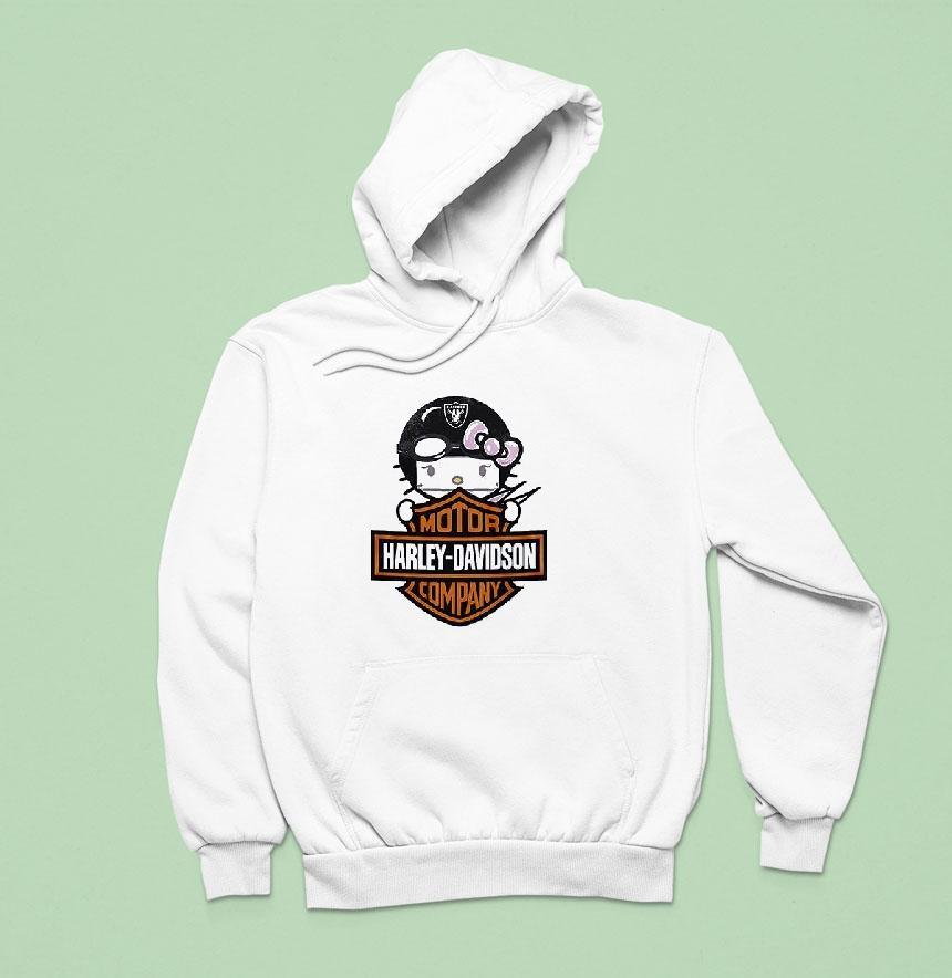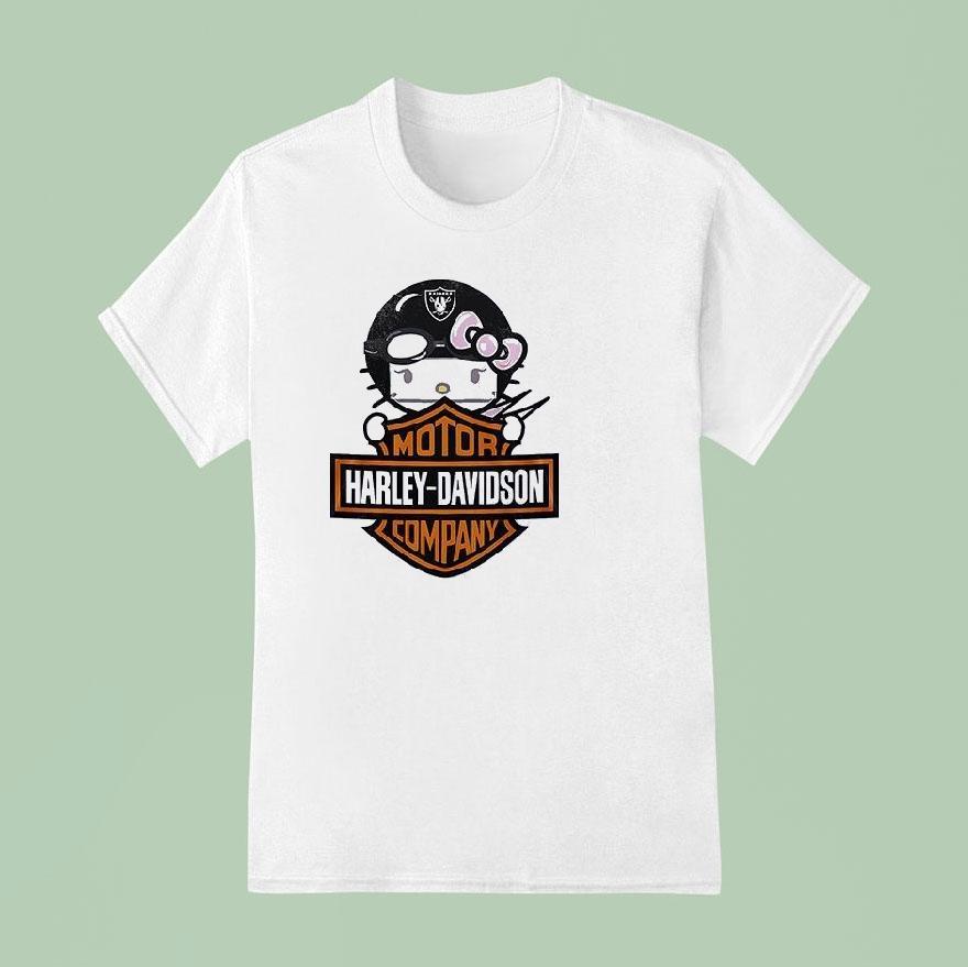 Everyday luxury, casual charm with Las Vegas Raiders X Hello Kitty Motor Harley Davidson Shirt, “Get ready to rev up your style with the ultimate collaboration: the Las Vegas Raiders X Hello Kitty Motor Harley Davidson shirt! This unique and edgy piece combines the iconic logos of two powerhouse brands, making it a must-have for any fan or fashionista.”