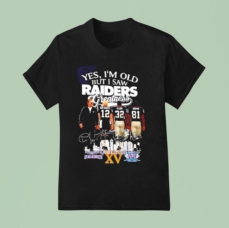 Classic tee, modern vibes with Las Vegas Raiders Yes I’m Old But I Saw Greatness Signatures Shirt, get ready to show off your love for the Las Vegas Raiders with the Yes I’m Old But I Saw Greatness Signatures Shirt. Featuring iconic player signatures, this shirt is a must-have for any die-hard fan who has witnessed the greatness of the Raiders over the years.