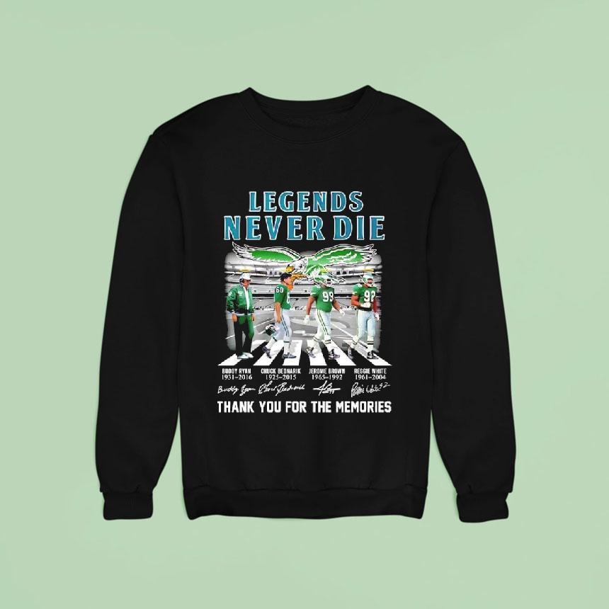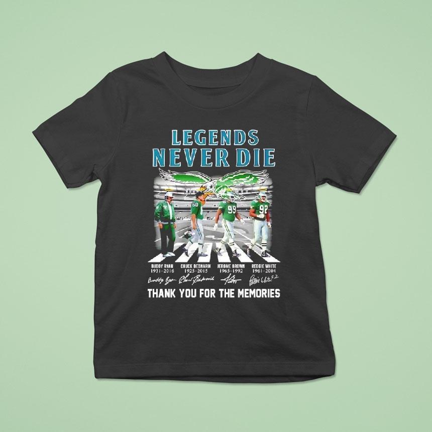 Uncomplicated style choice with Legends Never Die Philadelphia Eagles Walking Abbey Road Signaturs Shirt, as one of the most iconic football franchises in history, the Philadelphia Eagles are synonymous with greatness and perseverance. And with their newest Walking Abbey Road Signatures shirt, fans can proudly display their love for the team and honor the timeless legends that will never die.