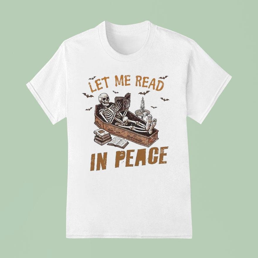 Your fashion canvas with Let Me Read In Peace Skeleton Books Coffin Halloween Shirt, do you find yourself constantly interrupted while trying to enjoy a good book? Now you can send a spooky yet playful message with the Let Me Read In Peace Skeleton Books Coffin Halloween Shirt. This fashionable and clever design is perfect for book lovers and Halloween enthusiasts.