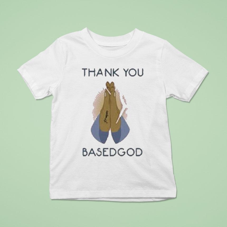 Chic comfort, everyday fashion with Lil B Thank You Basedgod Praying Shirt, calling all Lil B fans! Get ready to show your appreciation for the Basedgod with our new “Thank You Basedgod Praying” shirt. With the iconic praying hands logo and signature font, this shirt is a must-have for any true fan. Show your love and support now!