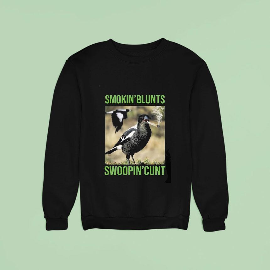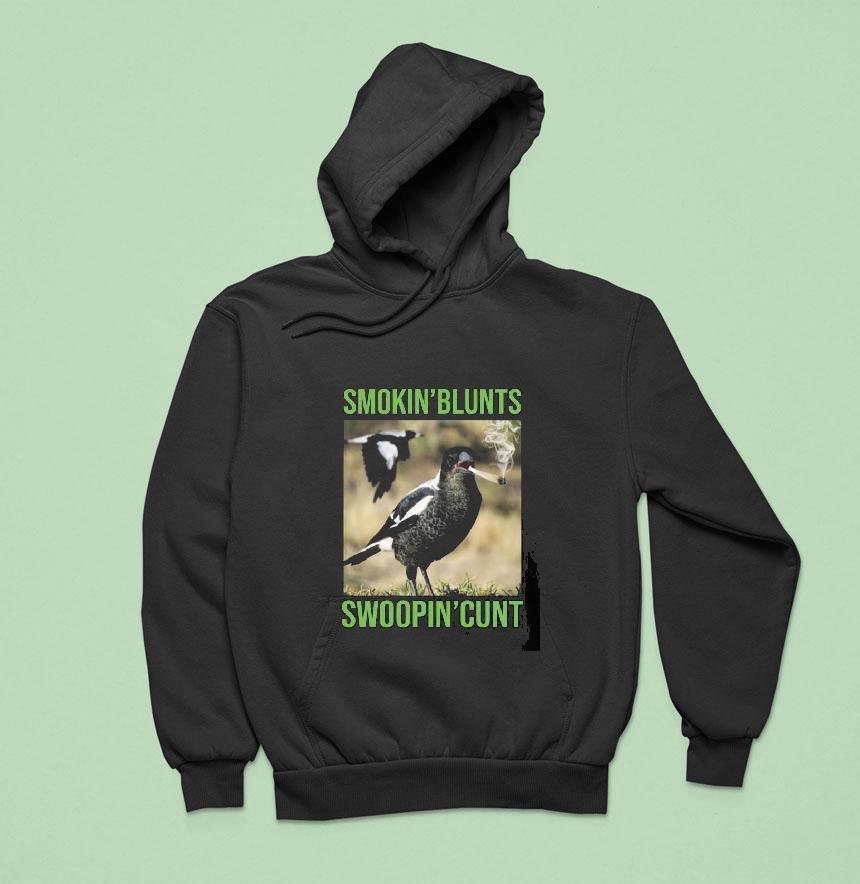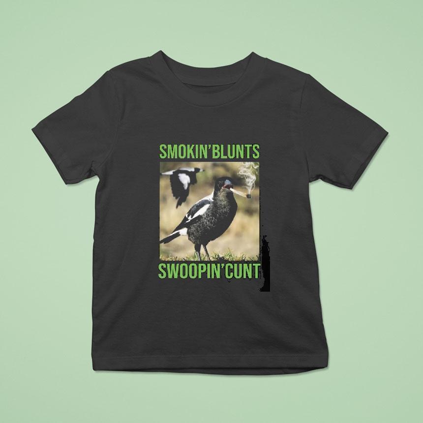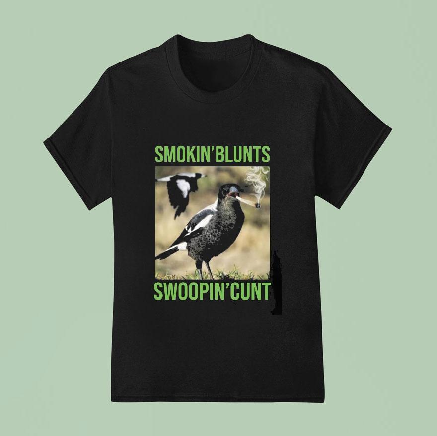 Classic tee, endless possibilities with Magpie Smokin’ Blunts And Swoopin’ Cunts Shirt, “Attention all bad-ass bird enthusiasts! Get ready to elevate your style game with the ultimate statement piece – the Magpie Smokin’ Blunts And Swoopin’ Cunts shirt. Featuring a bold design and edgy attitude, this shirt is sure to make a statement wherever you go.”