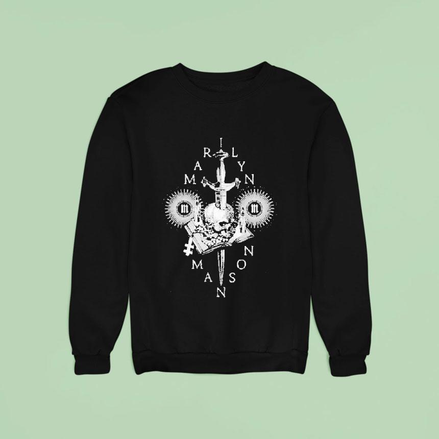 Wearable comfort, endless style with Marilyn Manson Dagger Skull Shirt, step into gothic style with the iconic Marilyn Manson Dagger Skull Shirt. This black tee features a large skull graphic adorned with a menacing dagger, paying homage to the shock rock artist’s signature aesthetic. Perfect for fans and fashionistas looking for a touch of dark glamour.