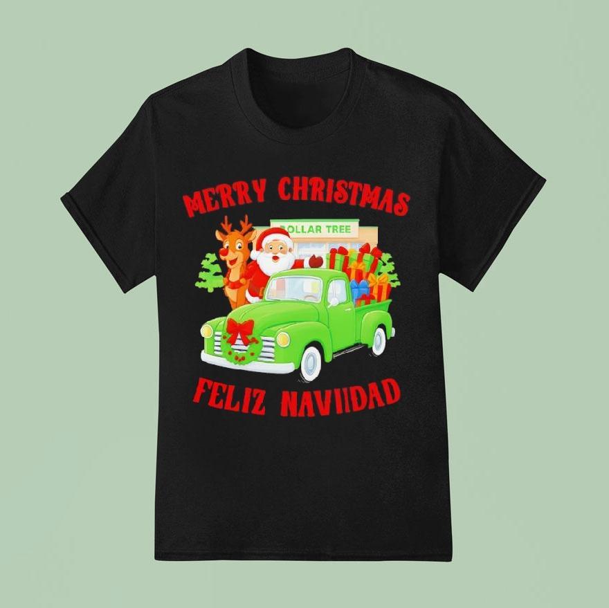 Chic basics, maximum impact with Merry Christmas Feliz Navidad Dollar Tree Vintage Truck Santa Shirt, celebrate the most wonderful time of the year in style with the perfect blend of festive cheer and vintage charm. The Merry Christmas Feliz Navidad Dollar Tree Vintage Truck Santa Shirt is the must-have attire to spread joy and holiday spirit this season.