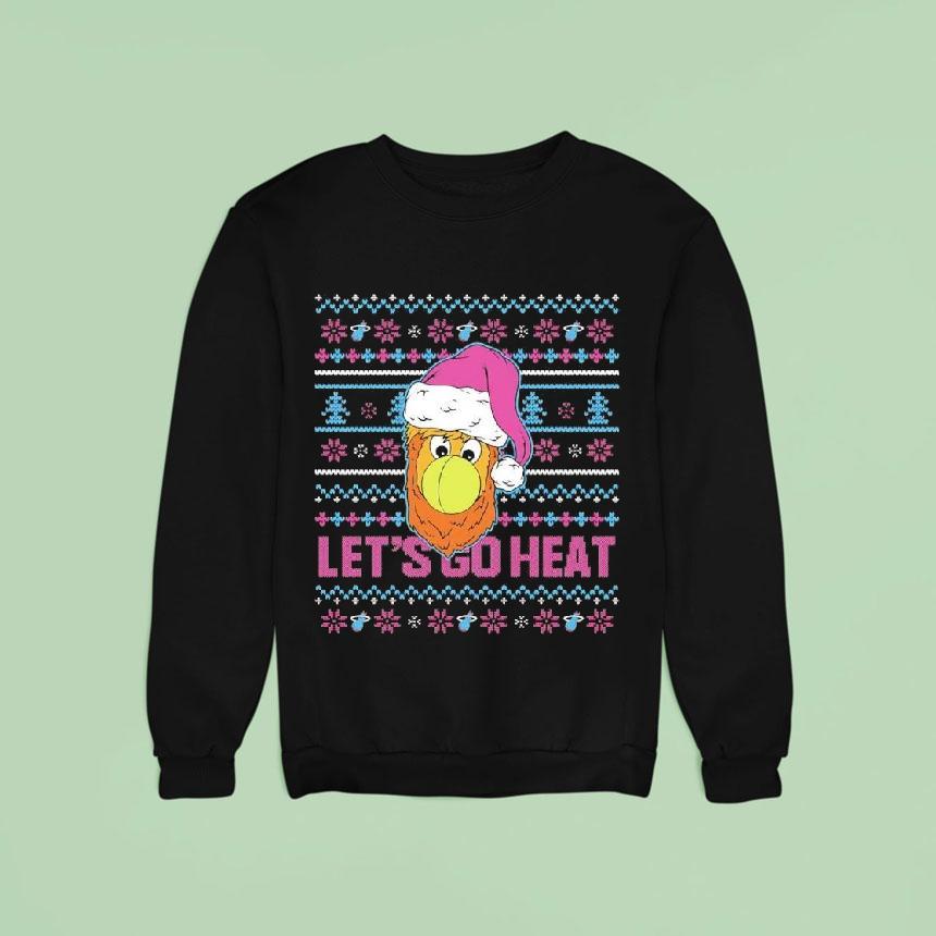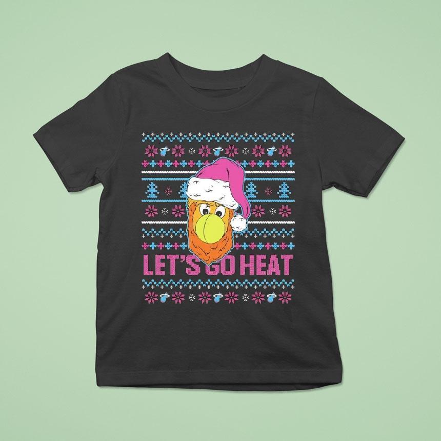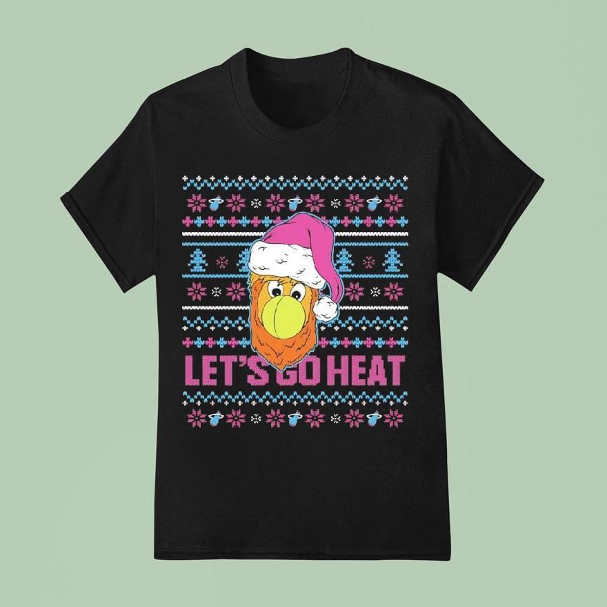 Casual comfort, chic look with Miami Heat Burnie Ugly Christmas Let’s Go Heat Shirt, get ready for the holiday season and show off your Miami Heat pride with the Burnie Ugly Christmas Let’s Go Heat Shirt! Featuring the team mascot and festive design, this shirt is a must-have for any Heat fan. Show your support and spread some holiday cheer with this unique shirt.