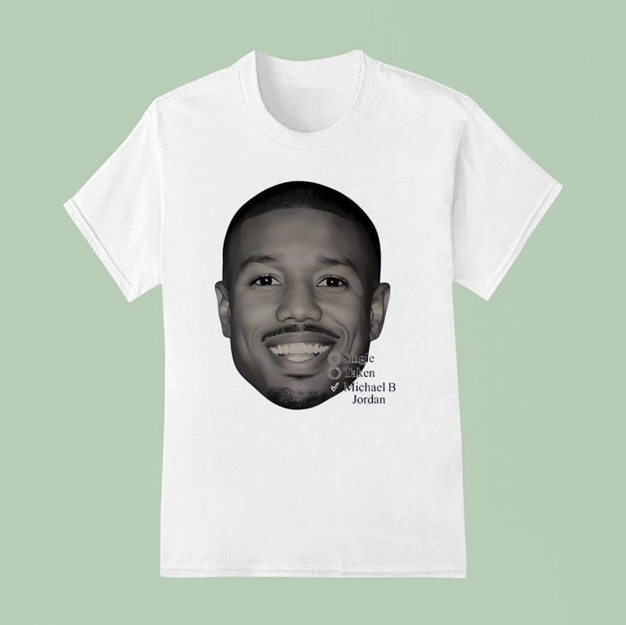 Classic tee, modern twist with Michael B. Jordan Face Single Taken Funny Shirt, introducing the ultimate shirt for Michael B. Jordan fans – the Face Single Taken Funny Shirt! With a bold design featuring his famous face and a witty phrase, this shirt is sure to turn heads and make a statement. Get yours now and show off your love for the talented actor.