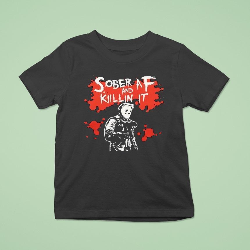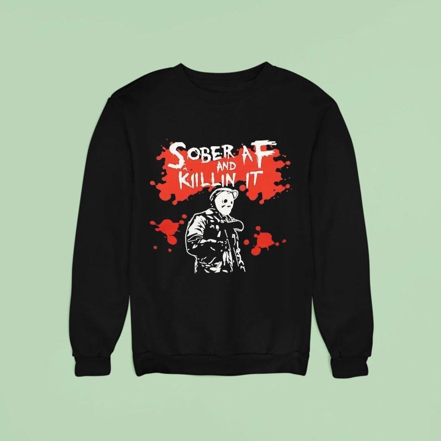 Simple sophistication, all day with Michael Myers Sober Af And Killin It Halloween Shirt, halloween is fast approaching and what better way to celebrate than with a nod to one of the most iconic horror movie characters? The Michael Myers Sober Af And Killin It Halloween Shirt is the perfect combination of spooky and empowering, making it a must-have for any horror fan.