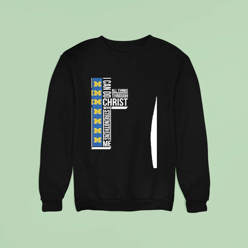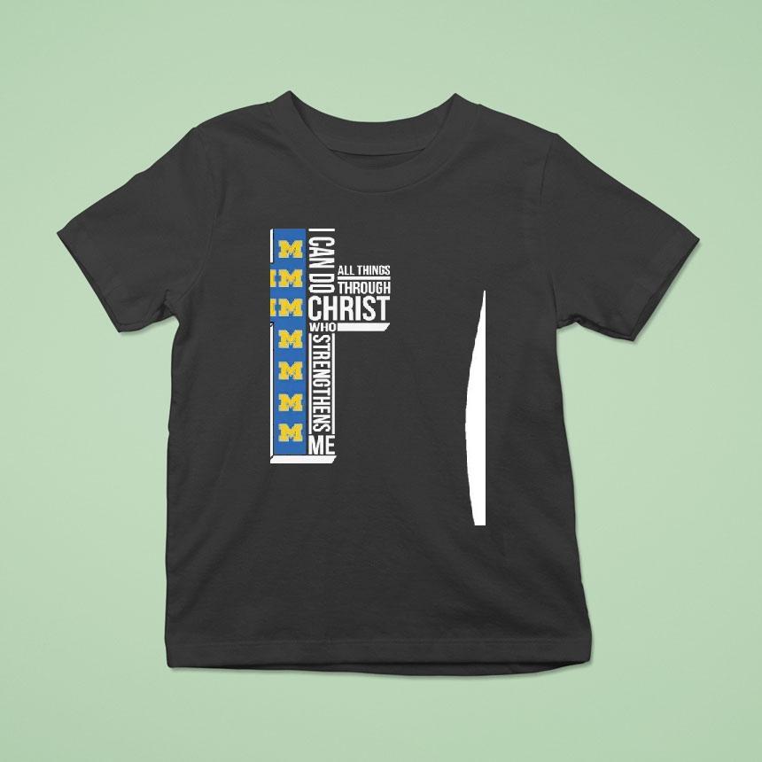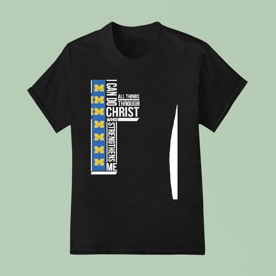 Simple style, big impact with Michigan Wolverines I Can Do All Things Through Christ Who Strengthiens Me Shirt, show off your love for both the Michigan Wolverines and your faith with our exclusive “I Can Do All Things Through Christ Who Strengthens Me” shirt. Made with high-quality materials, this shirt is perfect for game day or everyday wear. Go Blue and show your strength!