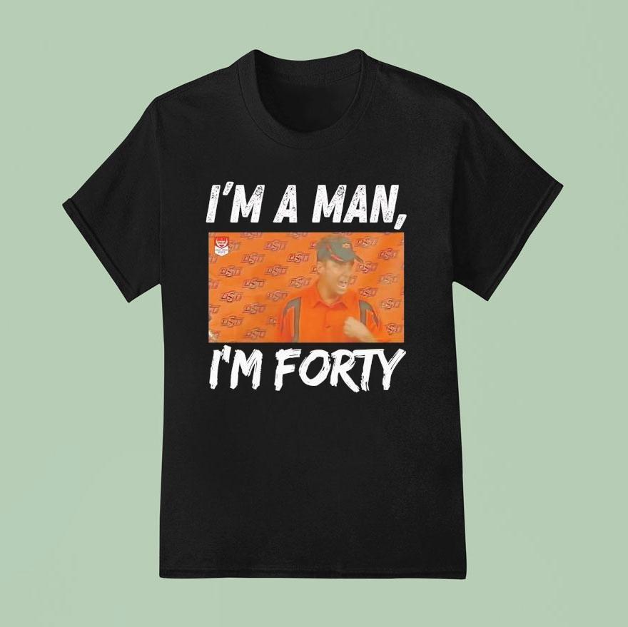 Wardrobe staple, endless style with Mike Gundy I’m A Man I’m Forty Oklahoma State Cowboys Shirt, mike Gundy, the iconic head coach of the Oklahoma State Cowboys, became an overnight sensation with his infamous “I’m a man, I’m forty” rant. To celebrate his fiery personality, the university released a special edition shirt, proudly displaying the coach’s famous quote. Let’s take a look at the story behind this trending apparel.