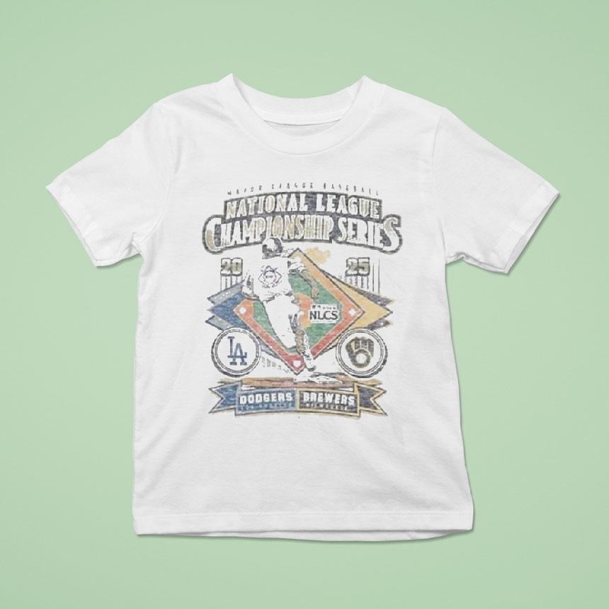 Your fashion canvas with Milwaukee Brewers Vs La Dodgers 2025 Nlcs Match Up Dueling Franklin Shirt, get ready for an epic battle on the diamond as the Milwaukee Brewers face off against the LA Dodgers in the 2025 NLCS match up. The competition will be fierce and fans will be showing their team pride with the new dueling Franklin shirts. Let the game begin!