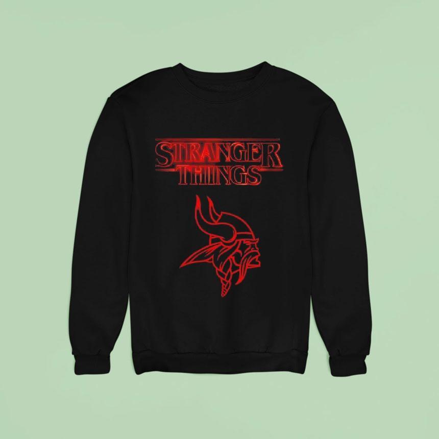 Wardrobe must-have with Minnesota Vikings Nfl Stranger Things Logo Shirt, the Minnesota Vikings NFL Stranger Things Logo Shirt combines two beloved fandoms into one unique and eye-catching design. Show off your love for your favorite team and the popular Netflix series with this shirt, sure to turn heads and start conversations.