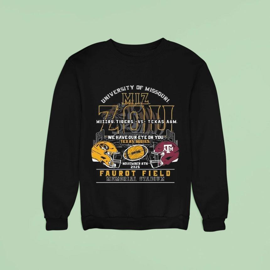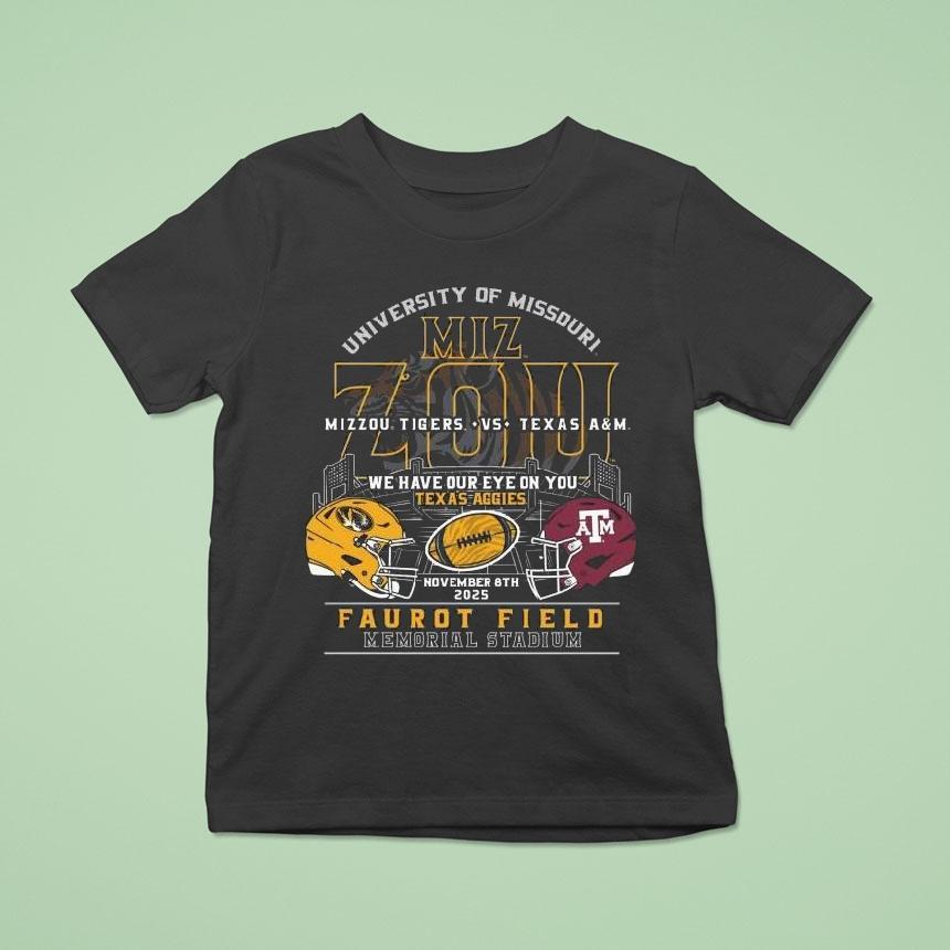 Classic tee, modern vibes with Mizzou Tigers Vs Texas Am We Have Our Eye On You Texas Aggies Game Day November 8 2025 Shirt, mizzou Tigers are ready to take on the Texas A&M Aggies on November 8, 2025. But it’s not just any game day – it’s the day when Mizzou fans will be proudly sporting their “We have our eye on you, Texas Aggies” shirts. Let the battle begin!