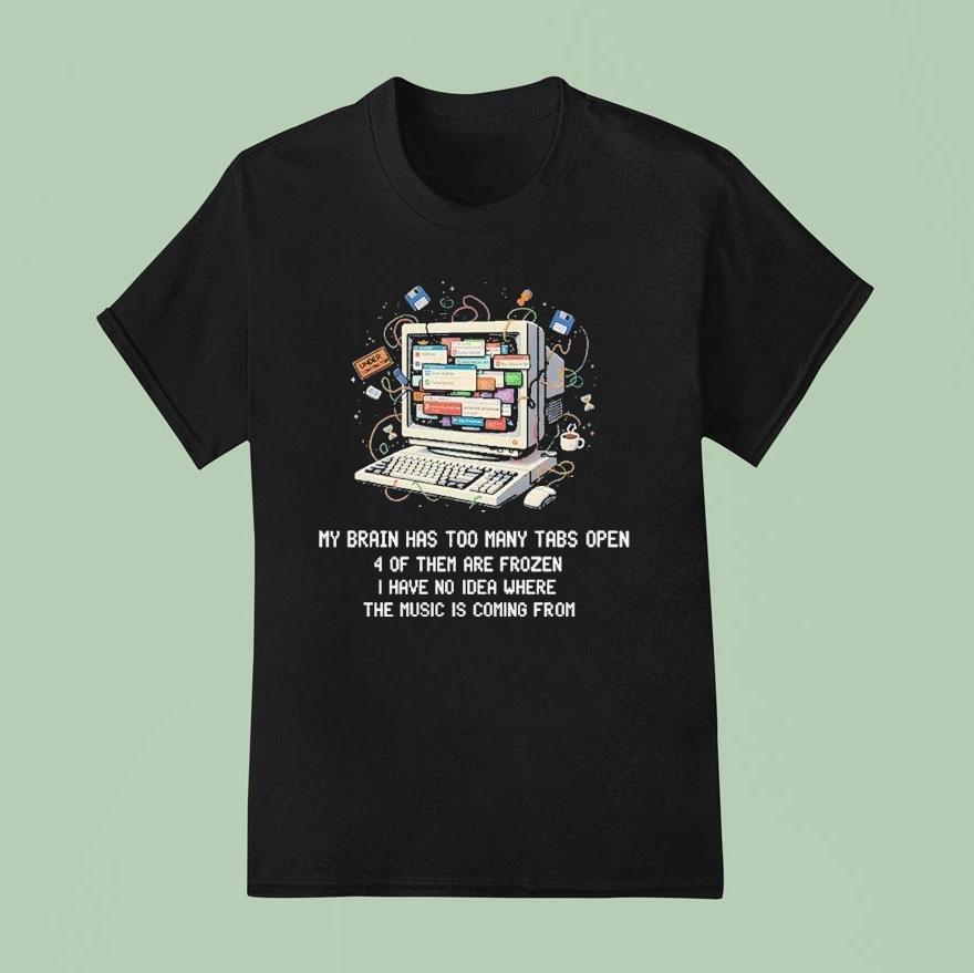 Versatile style, always chic with My Brain Has Too Many Tabs Open 4 Of Them Are Frozen I Have No Idea Where The Music Is Coming From Shirt, as I sit at my desk, I can feel the exhaustion creeping in. My brain has too many tabs open and I can’t seem to find the source of the music playing. 4 of those tabs are frozen, leaving me feeling overwhelmed. Thank goodness for my “My Brain Has Too Many Tabs Open 4 Of Them Are Frozen I Have No Idea Where The Music Is Coming From” shirt, a humorous reminder of the chaos inside my mind.