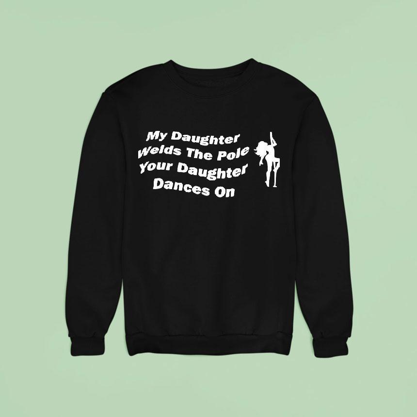 Simple style, big impact with My Daughter Welds The Pole Your Daughter Dances On Shirt, let’s hear it for the strong and talented daughters in our lives! And what better way to show your pride than with a custom shirt featuring the phrase “My Daughter Welds the Pole Your Daughter Dances On.” Celebrate their unique skills and passions with this one-of-a-kind shirt.