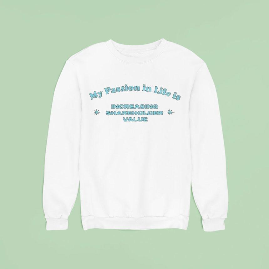 Effortless style, pure comfort with My Passion In Life Is Increasing Shareholder Shirt, as an avid entrepreneur and investor, my passion in life revolves around the pursuit of increasing shareholder wealth. I am constantly seeking innovative ways to drive profits and growth, with the ultimate goal of maximizing returns for shareholders. This drive fuels my determination every day.