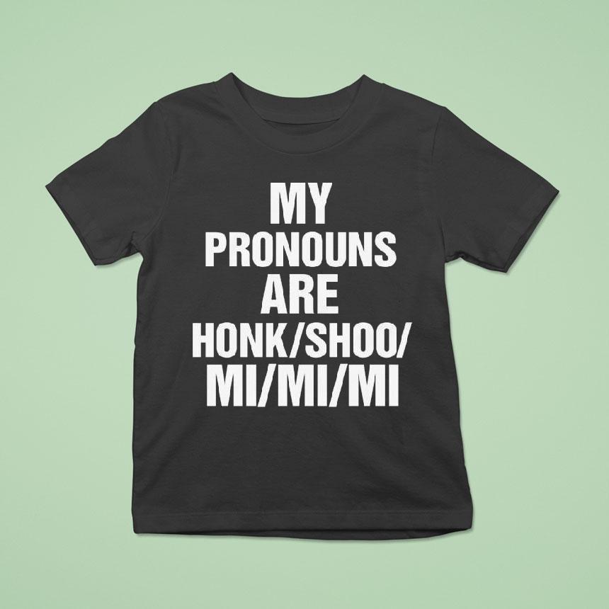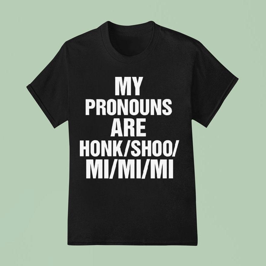 Simple style, maximum impact with My Pronouns Are Honk Shoo Mi Mi Mi Shirt, welcome to the world of Honk Shoo Mi Mi Mi shirts! These unique and playful t-shirts allow individuals to express their preferred pronouns in a fun and eye-catching way. Embrace your true identity and join the Honk Shoo Mi Mi Mi community with pride.