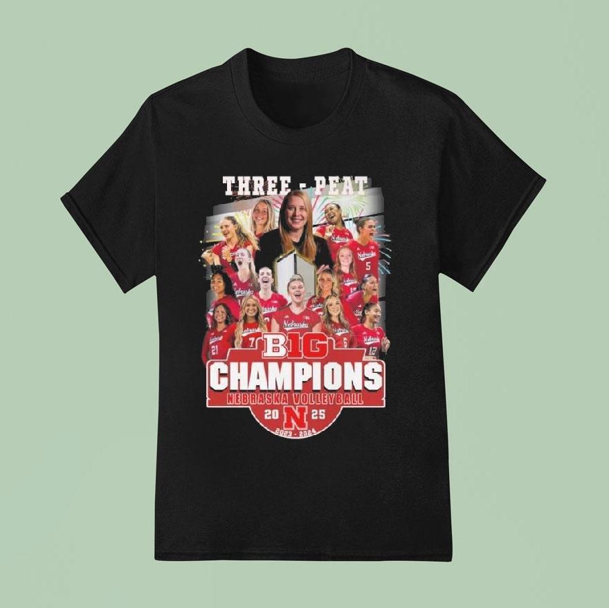 The perfect blank canvas with Nebraska Volleyball Three Peat Big Champions 2023-2025 Shirt, get ready to celebrate Nebraska volleyball’s incredible achievement with the Three Peat Big Champions 2023-2025 shirt! With their record-breaking run of three consecutive national titles, the Huskers have solidified their place as the top collegiate team. Show your love for this powerhouse program with this exclusive apparel.