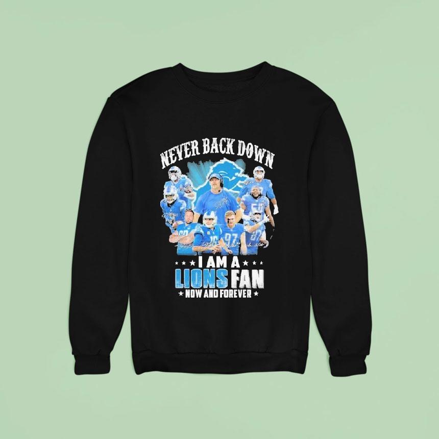 Casual sophistication, always in style with Never Back Down I Am A Detroit Lions Fan Now And Forever Signatures Players And Coach Shirt, as a die-hard football fan, I have always stood by my beloved Detroit Lions through thick and thin. And with the new “Never Back Down” attitude instilled by our dedicated signatures players and coach, proudly sporting the Lions shirt has become a symbol of unwavering loyalty and determination.