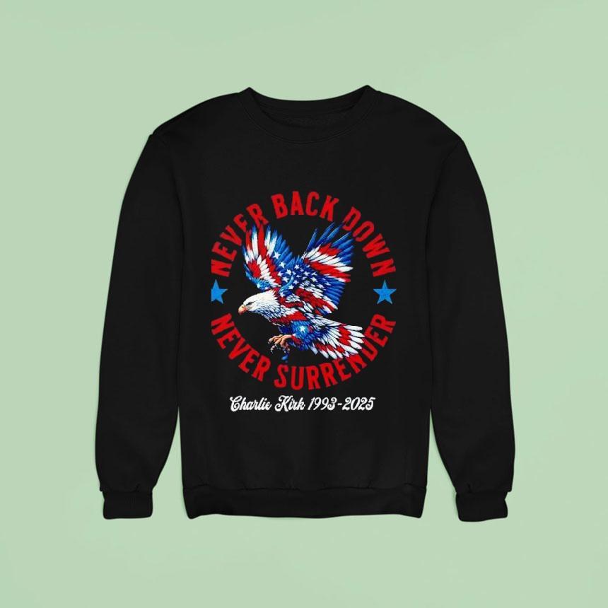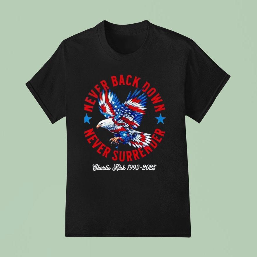 Style that stands out with Never Back Down Never Surrender Charlie Kirk Shirt, introducing the ultimate symbol of determination and resilience – the Never Back Down Never Surrender Charlie Kirk Shirt. This powerful and bold statement piece embodies the unwavering spirit of never giving up and standing steadfast in the face of adversity.