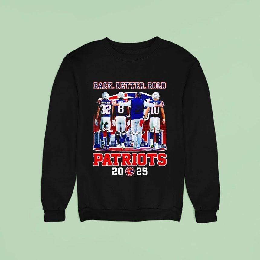 Style that suits you with New England Patriots Back Better Bold City Skyline 2025 Signatures Shirt, the New England Patriots are ready to take their game to new heights with the release of their Back Better Bold City Skyline 2025 Signatures Shirt. With a sleek design and powerful message, this shirt is a must-have for all die-hard Patriots fans. Get ready to show your support in style.