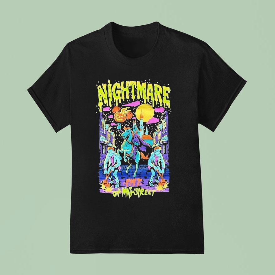 Style that stands out with Nightmare On Main St. Flying House Threads Halloween Shirt, experience the ultimate Halloween nightmare with the new Nightmare On Main St. Flying House Threads Halloween shirt. This spooky and stylish shirt features a haunted house flying through the night sky, perfect for adding a touch of fright to your wardrobe this season.