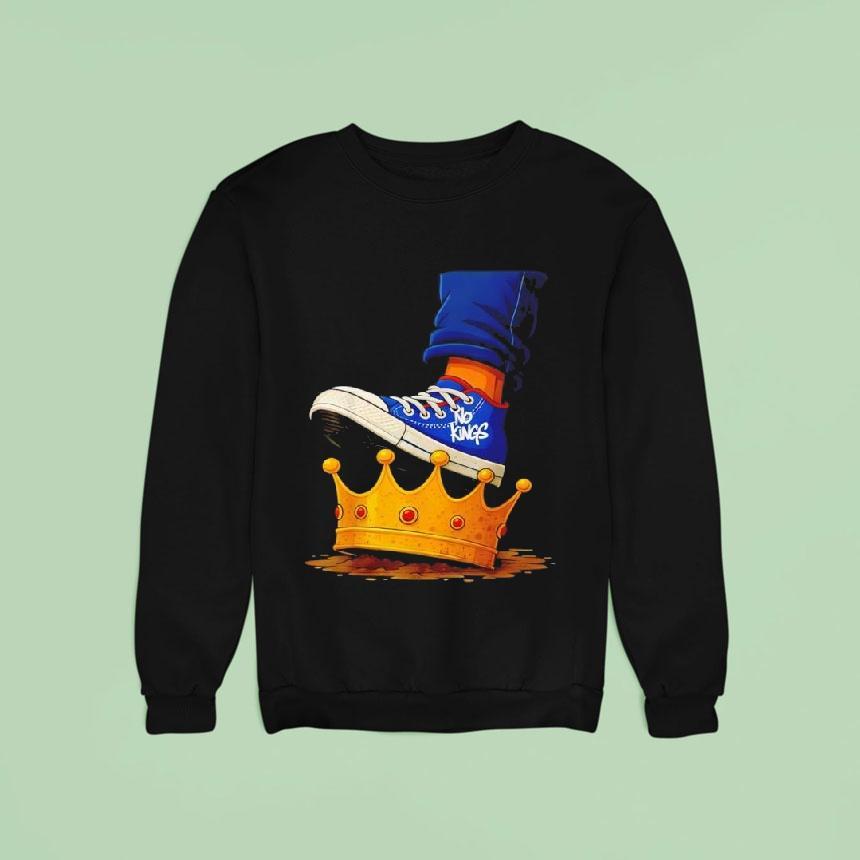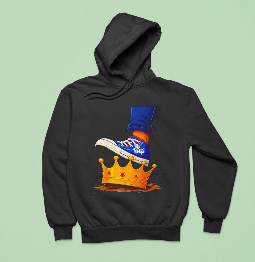 Instant style upgrade with No Kings Shoe On Crown Shirt, step into a world where kings wear shoes on their heads and crowns on their feet. No, this is not a fairytale, but rather the unique concept behind the No Kings Shoe On Crown Shirt. Get ready to make a statement with this edgy and unconventional fashion piece.