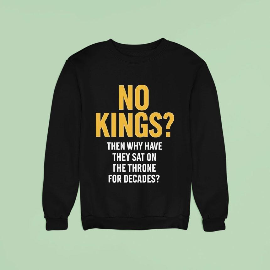 Essential wardrobe staple with No Kings Then Why Have They Sat On The Throne For Decades Shirt, are you tired of the same old power struggle and hierarchy? Show your rebellious spirit with our “No Kings Then Why Have They Sat On The Throne For Decades” shirt. Make a statement and challenge the status quo with this bold and thought-provoking design.