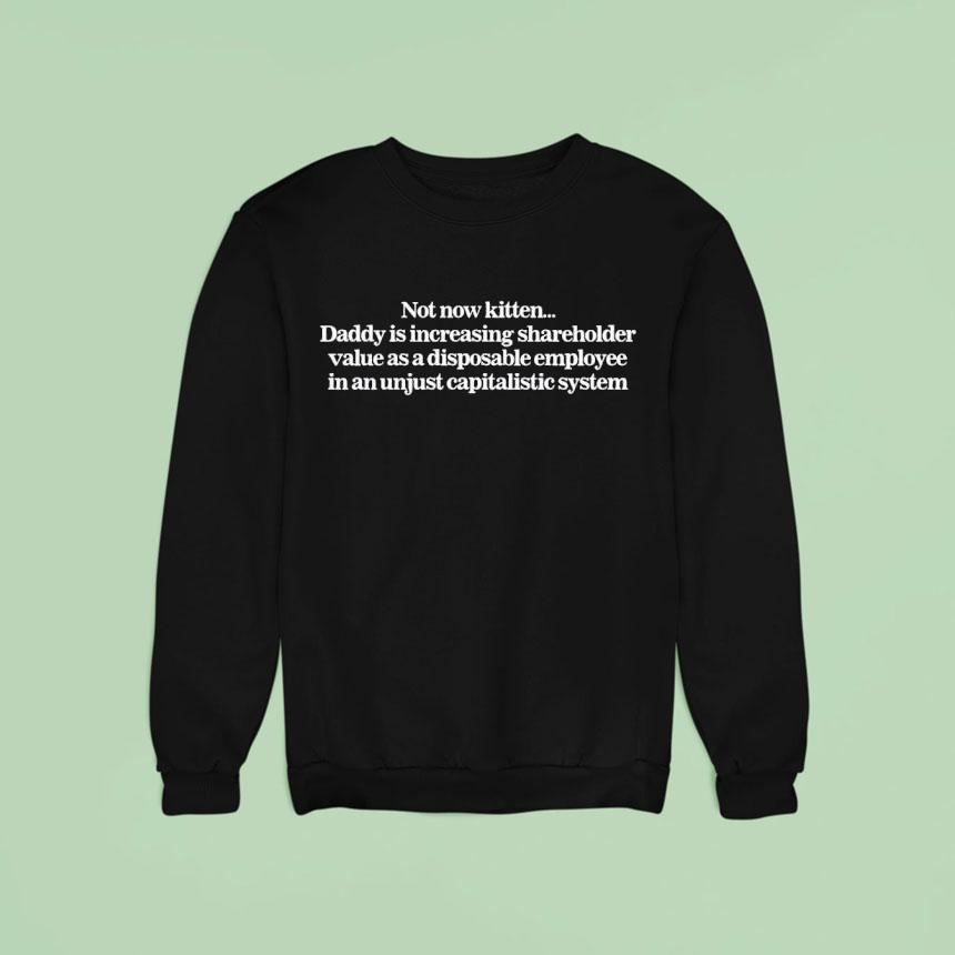 Everyday comfort redefined with Not Now Kitten Daddy Is Increasing Shareholder Value As A Disposable Shirt, as the demand for disposable shirts rises, an ambitious kitten daddy is busy working to increase shareholder value. But his furry companion just can’t seem to understand the urgency, constantly interrupting with playful antics. Will he be able to balance his roles as both a business strategist and a loving cat parent?