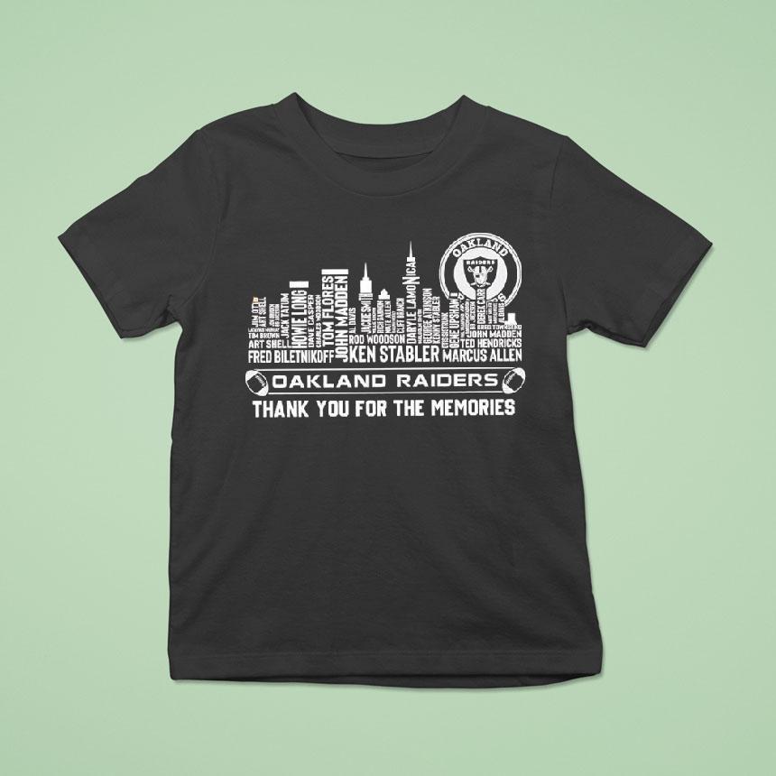 Effortless style, pure simplicity with Oakland Raiders Players List Names Thank You For The Memories Shirt, the Oakland Raiders have a long and proud history, with countless players who have left their mark on the team and the NFL. As we bid farewell to some of their iconic names, we thank them for the memories with our special Oakland Raiders Players List Names Thank You For The Memories shirt.