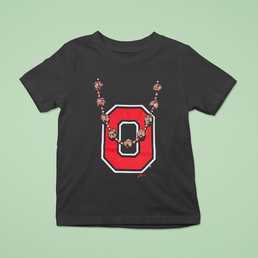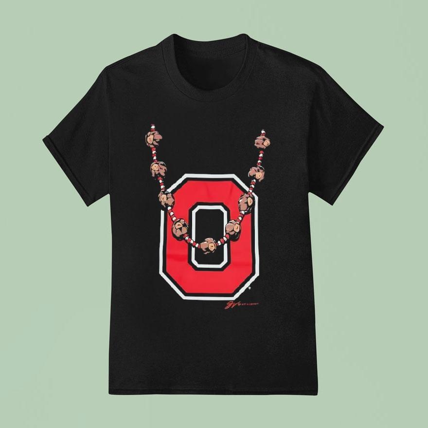 Classic tee, modern comfort with Ohio State Buckeyes Football Necklace Shirt, show off your team pride with the stylish and unique Ohio State Buckeyes Football Necklace Shirt. This officially licensed shirt features a bold football necklace design, making it the perfect addition to any Buckeyes fan’s wardrobe. Get ready to cheer on your team in style with this eye-catching shirt.