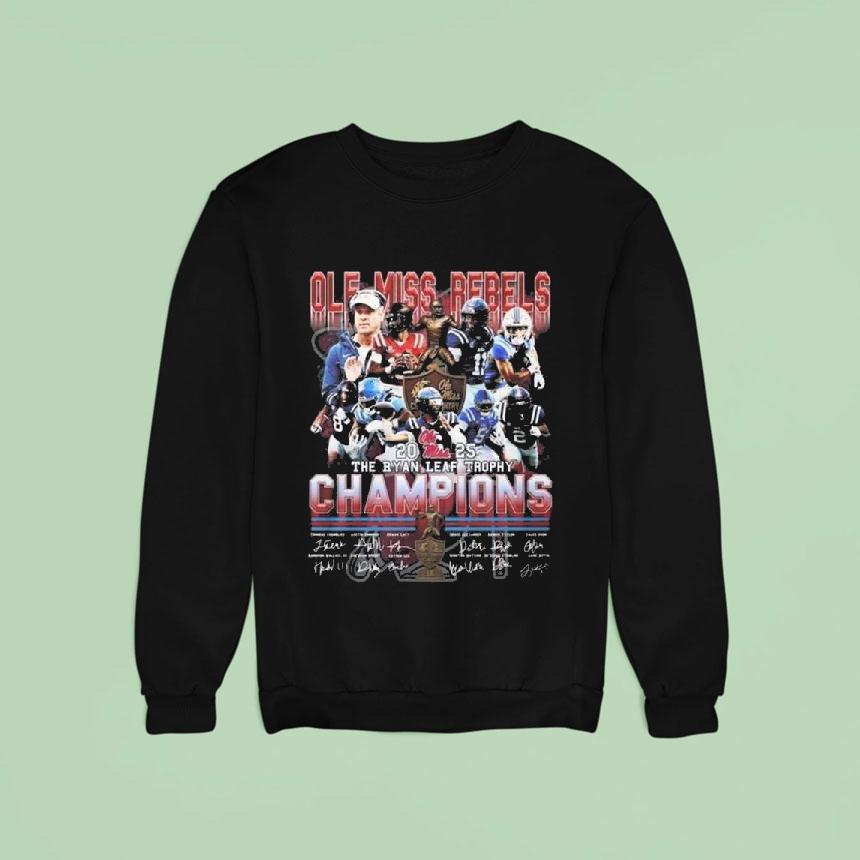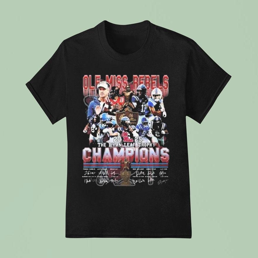 Versatile, stylish simplicity with Ole Miss Rebels 2025 The Byan Leaf Trophy Champions Signatures Shirt, welcome to the future of Ole Miss Rebels football, where they reign as the 2025 Byan Leaf Trophy Champions. Celebrate this momentous occasion with the iconic Ole Miss Rebels 2025 signatures shirt. Show your support for the team and their victorious journey to the top. Go Rebels!