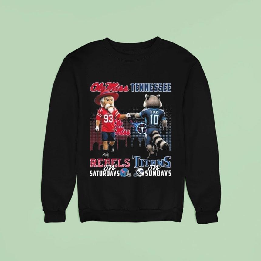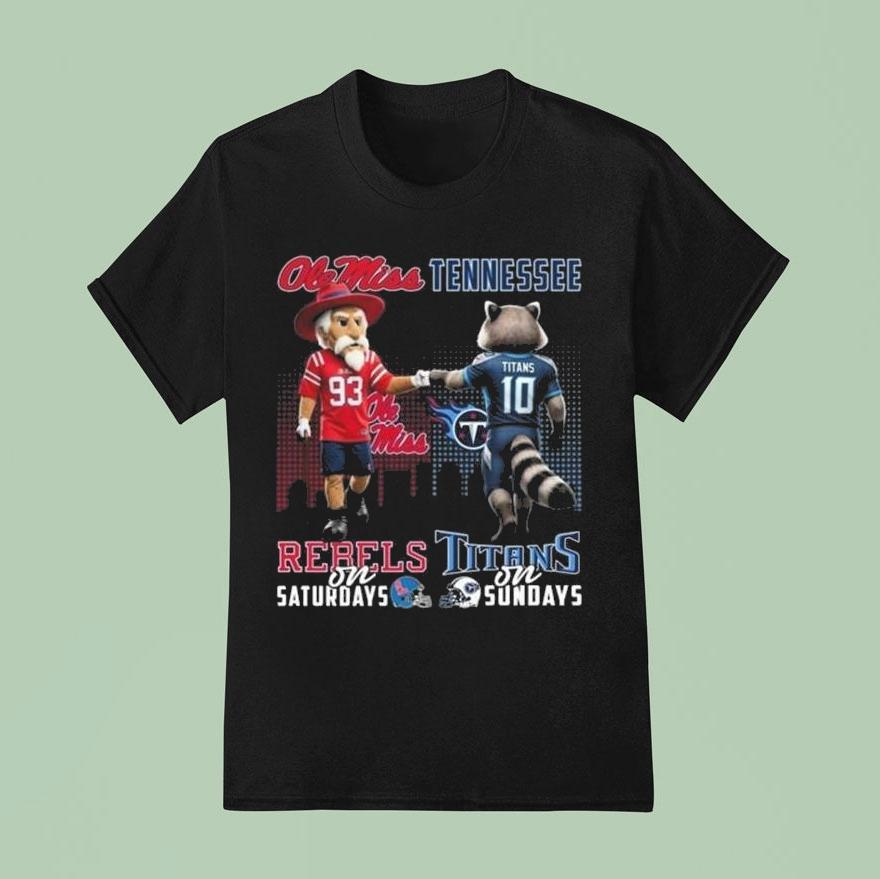 Effortless, everyday style with Ole Miss Rebels On Saturdays X Tennessee Titan On Sundays Mascot 2025 Shirt, cheer on the Ole Miss Rebels on Saturdays and the Tennessee Titans on Sundays with the brand new 2025 mascot shirt! Show off your team spirit and support as you root for your favorite teams. Get ready for game day in style with this must-have shirt.