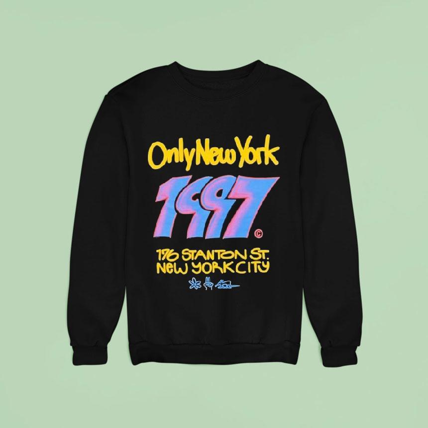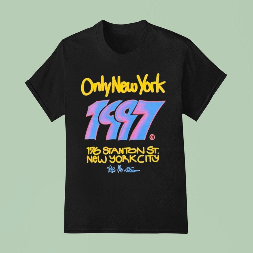 Effortless charm, everyday wear with Only New York 1997 176 Stanton St New York City Graffiti Shirt, step back in time with the limited edition Only New York 1997 graffiti shirt, emblazoned with the iconic 176 Stanton St address. A nod to the underground art scene of New York City, this shirt captures the rebellious spirit of the city that never sleeps. Don’t miss out on this piece of history.