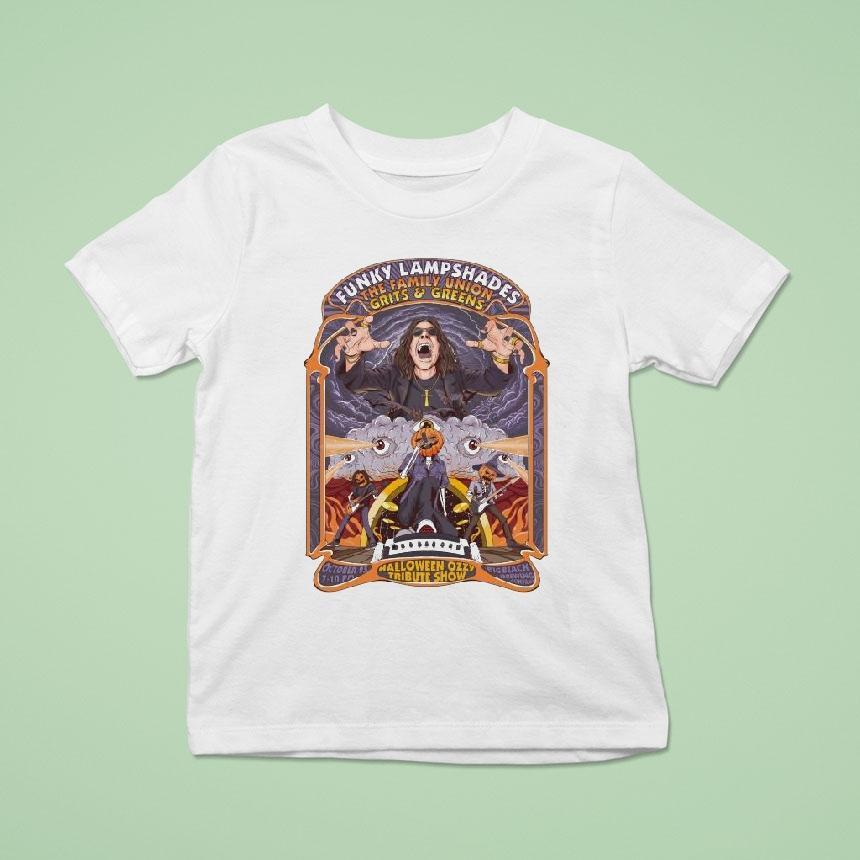 Chic minimalism, always with Ozzy Osbourne Funky Lampshades The Family Union Grits And Greens Halloween Ozzy Tribute Show Big Beach Brewing October 25 2025 Shirt, get ready to rock the night away with the ultimate Ozzy Osbourne Funky Lampshades Halloween tribute show at Big Beach Brewing on October 25, 2025! Join the family union as we jam out to the Prince of Darkness’s greatest hits while feasting on delicious grits and greens. Don’t forget to grab your commemorative shirt!