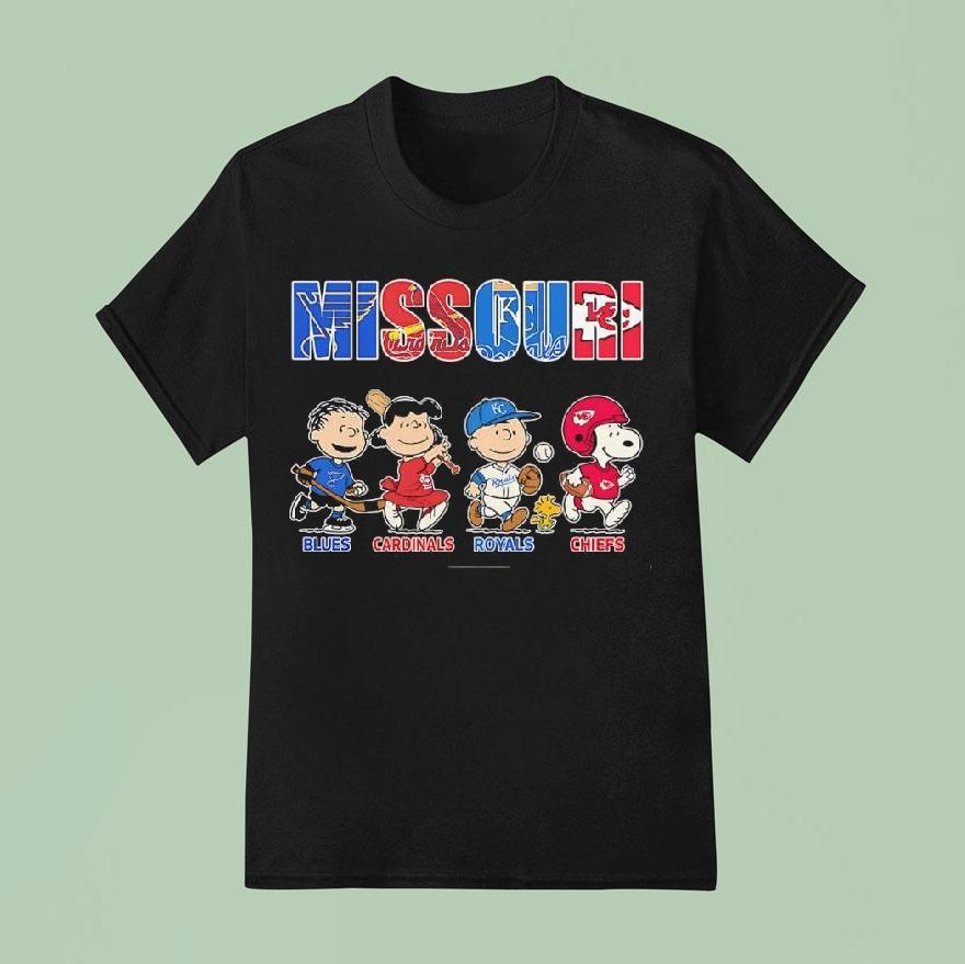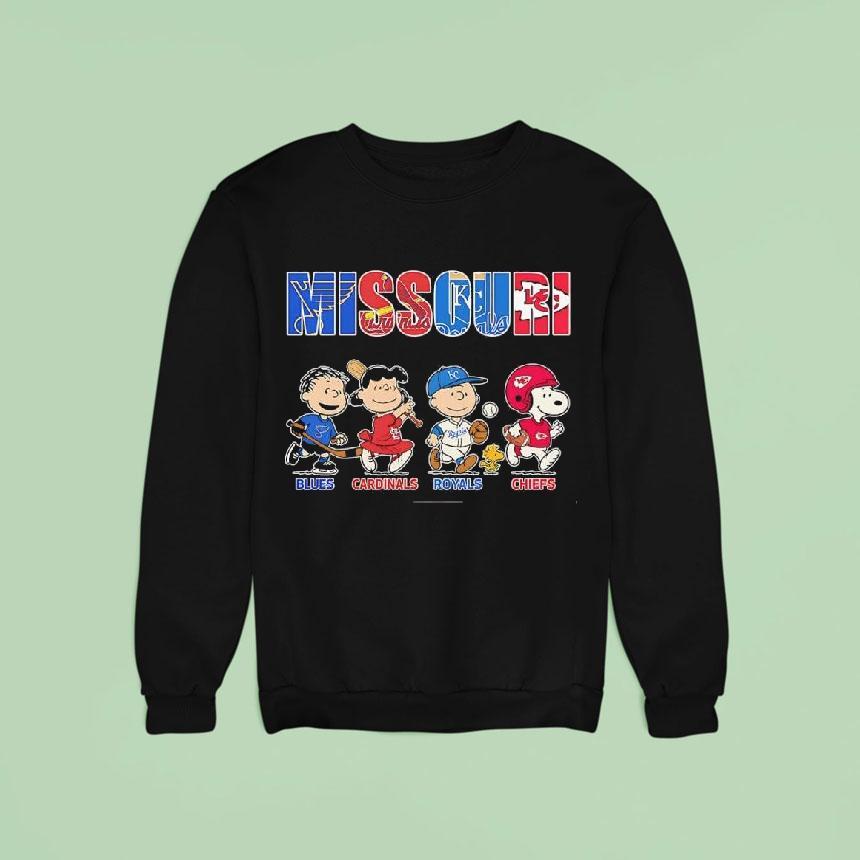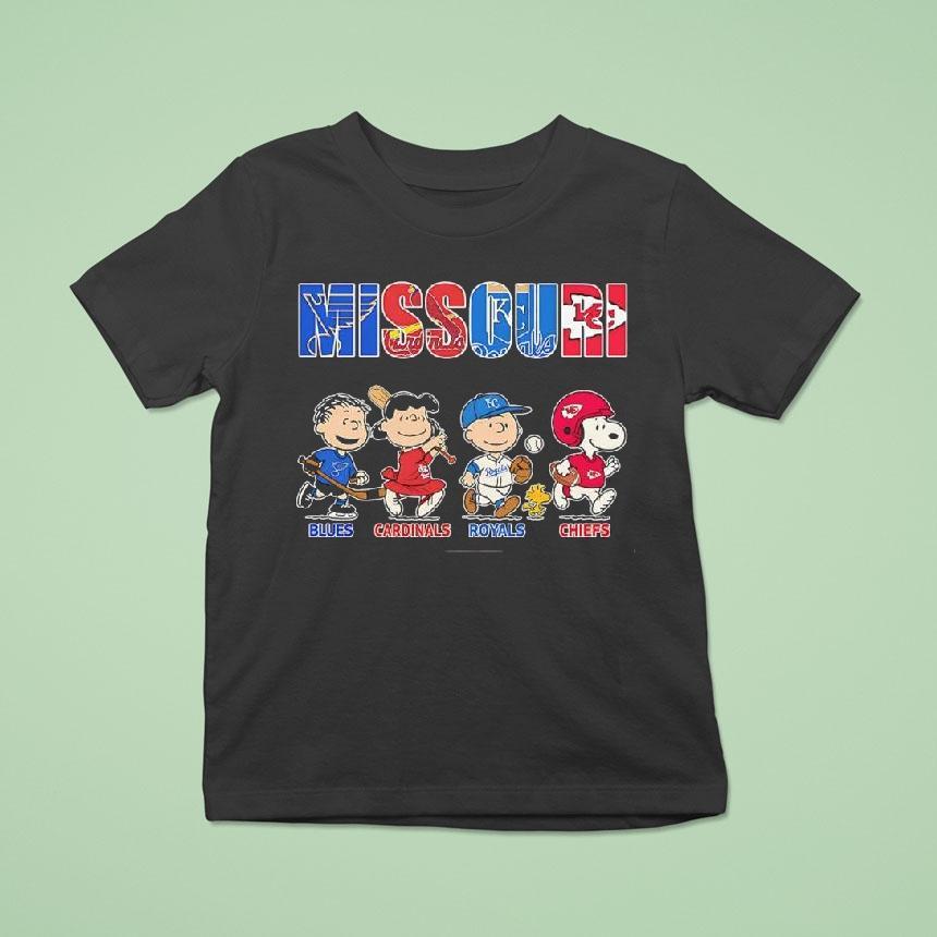 Dress it up or down with Peanuts Characters X Blues Cardinals Royals And Chiefs Missouri Sports Teams Shirt, attention all sports fans and fashion enthusiasts! If you’re a fan of the iconic Peanuts characters and the beloved Missouri sports teams – Blues, Cardinals, Royals, and Chiefs – then you don’t want to miss out on this must-have sports shirt. Represent your favorite teams in style with a touch of nostalgia.