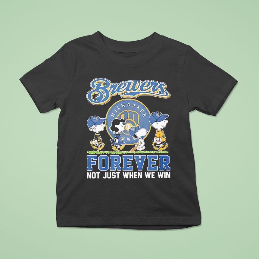 Chic basics, maximum impact with Peanuts Comic X Milwaukee Brewers Forever Not Just When We Win Shirt, peanuts Comic X Milwaukee Brewers Forever Not Just When We Win shirt is the perfect way for die-hard fans to show their unwavering support for their team. This limited edition shirt features the iconic Peanuts characters alongside the beloved Brewers logo, making it a must-have for any fan’s wardrobe.