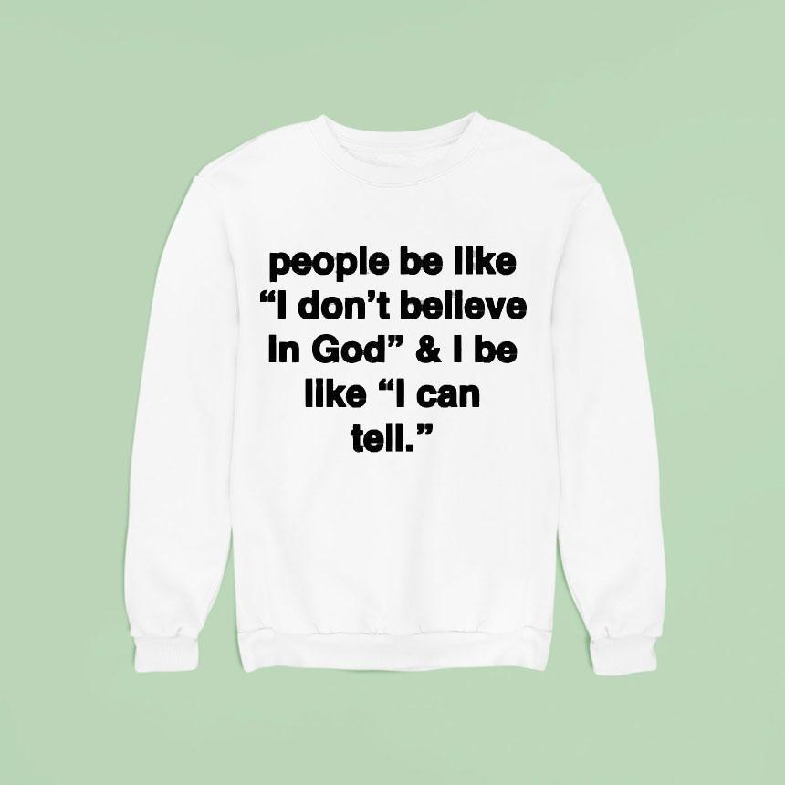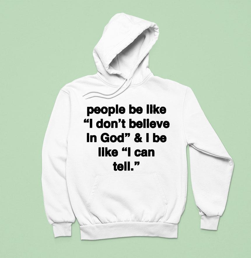Your comfort, your style with People Be Like I Don’t Believe In God And I Be Like I Can Tell Shirt, “Many people proclaim their disbelief in God, but I proudly wear a shirt that shows otherwise. This “I Can Tell” shirt represents my unwavering faith and the confidence I have in my beliefs, despite what others may say. People may be like “I don’t believe in God,” but I be like “I can tell.”