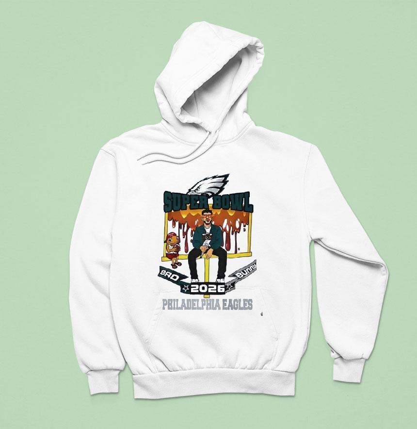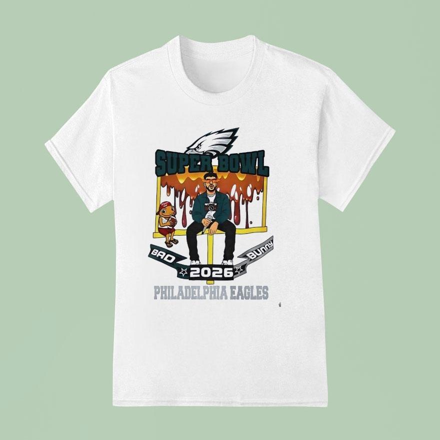 Simple style, bold impact with Philadelphia Eagle Football Bad Bunny Super Bowl 2026 Shirt, get ready to show your love for the Philadelphia Eagles and Bad Bunny in Super Bowl 2026 with the ultimate shirt! Celebrate the team’s successes and the Latin superstar’s electrifying performance with this must-have piece for any fan. Don’t miss out on the chance to be a part of history.