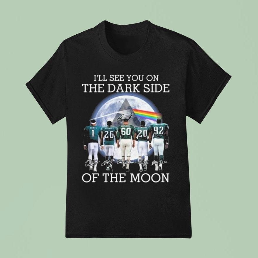 Classic tee, modern twist with Philadelphia Eagles I’ll See You On The Dark Side Of The Moon Players Signatures 2025 Shirt, get ready to show off your love for the Philadelphia Eagles with the limited edition “I’ll See You On The Dark Side Of The Moon” players signatures shirt. Featuring the team’s iconic logo and signatures of top players, this shirt is a must-have for any die-hard Eagles fan.