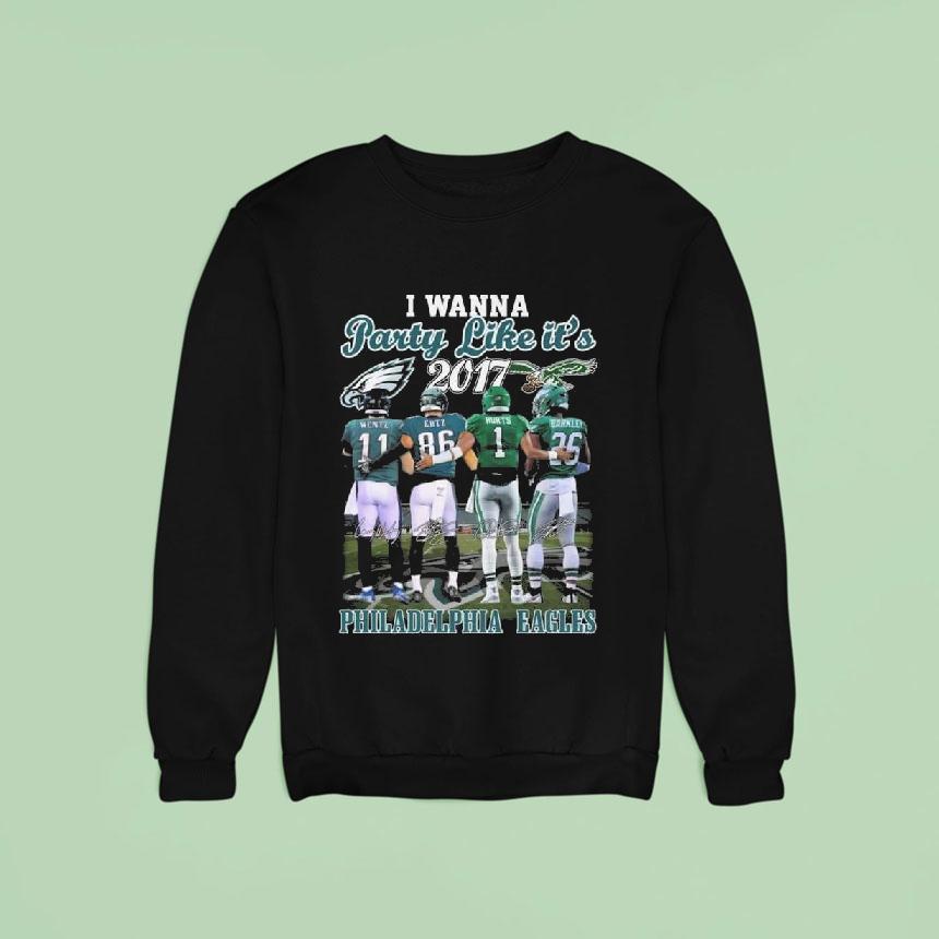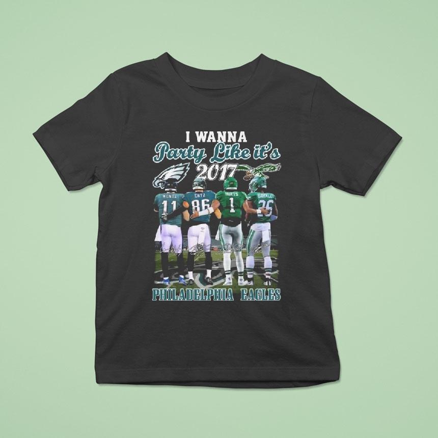 Chic comfort, everyday fashion with Philadelphia Eagles I Wanna Party Like It’s 2017 Wentz Ertz Hurts And Barkley Signatures Shirt, get ready to relive the excitement of the 2017 season with the Philadelphia Eagles I Wanna Party Like It’s 2017 Wentz Ertz Hurts And Barkley Signatures Shirt. Celebrate the team’s incredible run to the Super Bowl with this iconic shirt featuring the signatures of some of their star players. Fly, Eagles, fly!
