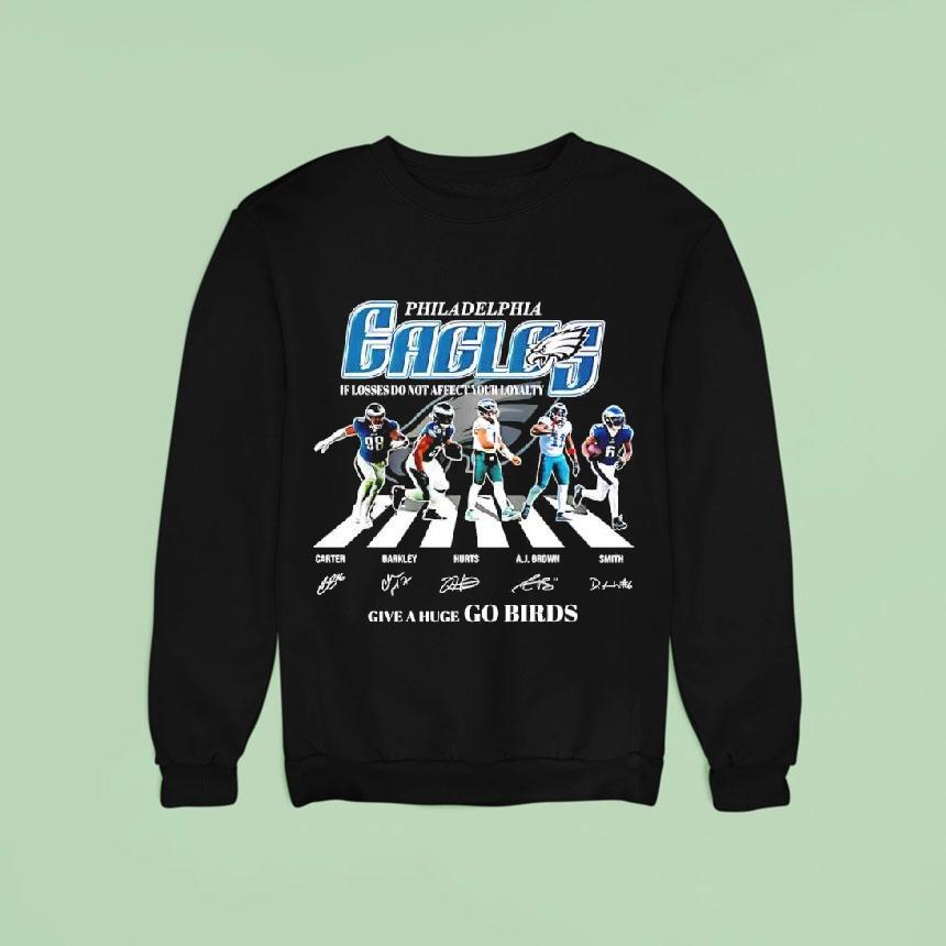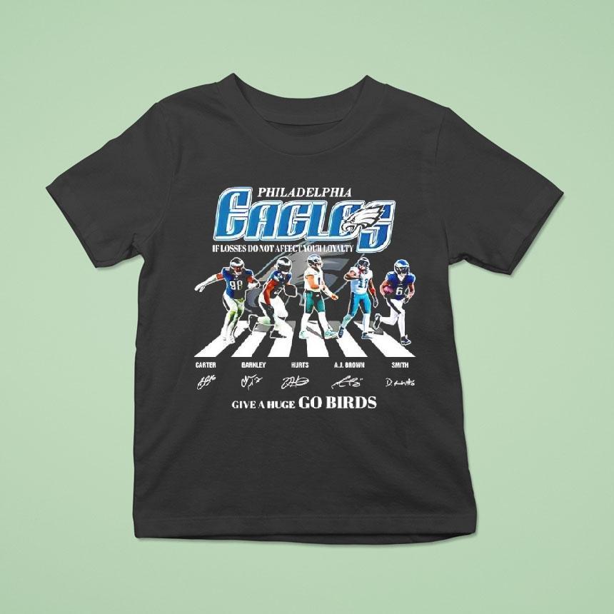 Chic minimalism, everyday wear with Philadelphia Eagles Players Carter X Barkley X Hurts X A.j. Brown X Smith Give A Huge Go Birds Shirt, the Philadelphia Eagles are ready to soar as their talented players, Carter, Barkley, Hurts, A.j. Brown, and Smith, unite on the field. With their determination and skill, they’ll surely make their fans proud and prove their devotion to the team, proudly wearing their “Go Birds” shirts.